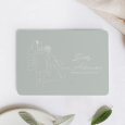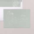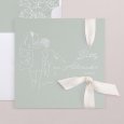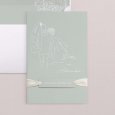 In een zachte mintgroene tint schetst de trouwuitnodiging Green Romance in enkele lijnen het beeld van twee verloofden die samen een nieuw hoofdstuk beginnen. Op romantische en poëtische wijze illustreert deze uitnodiging jullie aanstaande huwelijk.