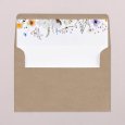 Mooie wilde bloemen schetsen zich af op de trouwkaart Wildery. Deze poëtische samenstelling, verfraaid met elegante typografie, is perfect voor het vieren van een bohemien-themabruiloft.