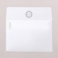 Het bijhorende ovale labeltje kan met behulp van een lintje (optioneel) rond de vouwlijn worden gebonden.
