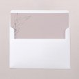 Trouwkaart in de vorm van een hoesje. Deze trouwkaart bevat 1 uitnodiging, 1 boekenlegger, 1 klein labeltje en 2 kleine kaartjes die je zelf kan personaliseren naargelang jullie wensen (dagprogramma, nuttige adressen, routebeschrijving, brunch voor de volgende ochtend...). De 3 kaartjes worden in de binnenkant van het hoesje geplaatst, afgesloten met een lintje naar keuze (extra te bestellen).