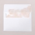 Trouwkaart in de vorm van een hoesje. Deze trouwkaart bevat 1 uitnodiging, 1 boekenlegger, 1 klein labeltje en 2 kleine kaartjes die je zelf kan personaliseren naargelang jullie wensen (dagprogramma, nuttige adressen, routebeschrijving, brunch voor de volgende ochtend...). De 3 kaartjes worden in de binnenkant van het hoesje geplaatst, afgesloten met een lintje naar keuze (extra te bestellen).