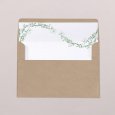 Een evenwichtig contrast van mooie materialen: canson-papier, zachtgroene aquarel en glanzende goudfolie. Kondig jullie grote dag aan met dit idyllische en elegante model Korinth.