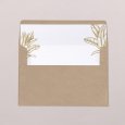 Tropische lijntekeningen in glanzende goudfolie. Het ideale kaartje voor het aankodigen van een elegante, exotische bruiloft. Geen een eerste sfeerbeeld mee van het aanstaande feest met het model Bornéo.