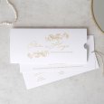 Deze sprekende trouwkaart Orangerie II is een pareltje van sierlijke namen en bloemen in prachtige goudfolie. Bij het uitnodigen van de gasten voor het liefdevolle jawoord, geef je zo ook meteen een mooi sfeerbeeld mee van een aanstaande elegante en romantische bruiloft.
