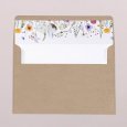 Mooie wilde bloemen schetsen zich af op de trouwkaart Wildery. Deze poëtische samenstelling, verfraaid met elegante typografie, is perfect voor het vieren van een bohemien-themabruiloft.