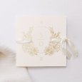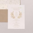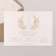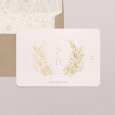 Elegante gouden details zijn prachtig verwerkt op de trouwkaart L'Estate. De initialen van jullie namen en een krans van royale bloemen zijn getooid met goudfolie op dit prachtige design, een symbool van jullie eenheid.