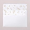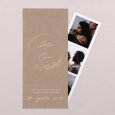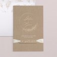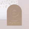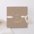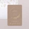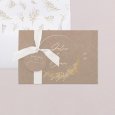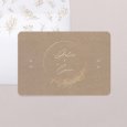 Op de trouwkaart Mozart omringt een tijdloze plantaardige fijne krans jullie namen. Verfijnd met gouden afwerkingen en versierd met kraftpapier, is dit model perfect voor een landelijk trouwthema.