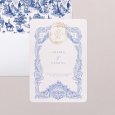 De Vienna trouwkaart kondigt op elegante wijze je bijzondere dag aan. Ze werd versierd met illustraties en decoratie die het regententijdperk waardig zouden zijn. Bloemen, bladeren, een gouden médaillon en initialen in kalligrafie geven deze creatie van papier een esthetiek die zonder twijfel doet denken aan de serie Bridgerton.