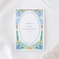 Een prachtige aquarelschildering siert de trouwkaart Blue garden. Op dit ontwerp worden fijn geïllustreerde boeketten, potten en kleurrijke bloemen samengebracht in een idyllische tuin. Met deze poëtische touch is het een tipje van de sluier van jullie aanstaande huwelijksfeest.