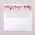 De trouwkaart Roses and Red toont een prachtig bloemenboekt in rozetinten, dat de voornamen van het bruidspaar versiert. Dit ontwerp, dat elegant met aquarel werd geschilderd, kondigt jullie romantische verbintenis aan.