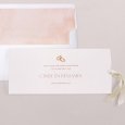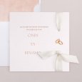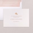 Twee met elkaar verbonden gouden ringen sieren de trouwuitnodiging Eternal Love en symboliseren op stijlvolle wijze de verbinding van twee zielen. Dit minimalistische en elegante ontwerp richt de aandacht op het belangrijkste: de viering van jullie liefde.