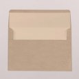 Deze uitnodiging bestaat uit een eenvoudige kaart, met een extra drieluik van kalkpapier die je rond de kaart vouwt. Staand formaat.