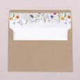 Mooie wilde bloemen schetsen zich af op de trouwkaart Wildery. Deze poëtische samenstelling, verfraaid met elegante typografie, is perfect voor het vieren van een bohemien-themabruiloft.