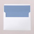 Een bloemrijke boog in blauwe tinten, namen gekleed in verfijnde typografie, kraftachtig papier: de trouwkaart Azzura kondigt een plattelandse viering aan die je niet mag missen.