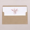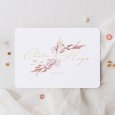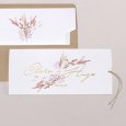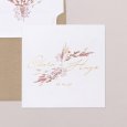 Een explosie van droogbloemen concentreert zich rond de ampersand, de symbolische verbintenis van liefde en trouw. De namen in elegante goudfolie in combinatie met zachte kleuren maakt het tot een prachtig geheel. Deze bohemian trouwkaart Ambrosia III zullen de gasten verwonderen en hen een eerste sfeerbeeld meegeven van de bruiloft. Te verkrijgen in meerdere kaartformaten.