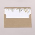 Een boeket van varens, kruiden en kleine bloemen vermengt zich op de trouwkaart Arpèges. Het kraftpapier en de elegante typografie completeren deze samenstelling met een landelijke uitstraling, ideaal voor een natuurlijk chique bruiloft.