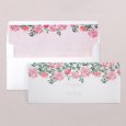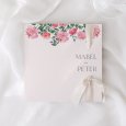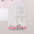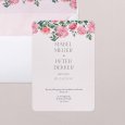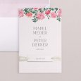 De trouwkaart Roses and Red toont een prachtig bloemenboeket in rozetinten, dat de voornamen van het bruidspaar versiert. Dit ontwerp werd elegant met aquarel geschilderd, en kondigt uw romantische verbintenis aan.