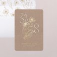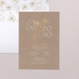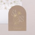 De datum van jullie Grote Dag staat centraal op de trouwkaart Ophelia. Kraftpapier en bloemenillustraties verguld met goud sieren dit model, perfect voor degenen die dromen van een landelijke, natuurlijke of vintage trouwthema.