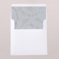 Eenvoud straalt met dit mooi contrast tussen de glanzende goudfolie, het zuivere wit en grijsblauwe kleur. Verwonder familie en vrienden met dit elegant model Marie-Antoinette.
