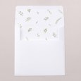 Deze uitnodiging is een vierkante vouwkaart met een hoesje aan de linker binnenkant. Het bijhorende inlegkaartje kan in het hoesje worden geschoven.