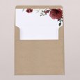 Het prachtige contrast van wit en kraft samen met de elegante pioen bloemen geven de trouwkaart Burgundy Peonies een sprekende uitstraling. Een trouwuitnodiging voor het aankondigen van een bruiloft in een thema van zowel vintage, rustiek als bohemian chic.