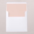 Deze uitnodiging is een vierkante vouwkaart met een hoesje aan de linker binnenkant. Het bijhorende inlegkaartje kan in het hoesje worden geschoven.