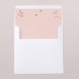 Deze uitnodiging is een vierkante vouwkaart met een hoesje aan de linker binnenkant. Het bijhorende inlegkaartje kan in het hoesje worden geschoven.
