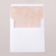 Deze uitnodiging is een vierkante vouwkaart met een hoesje aan de linker binnenkant. Het bijhorende inlegkaartje kan in het hoesje worden geschoven.