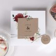 Het prachtige contrast van wit en kraft samen met de elegante pioen bloemen geven de trouwkaart Burgundy Peonies een sprekende uitstraling. Een trouwuitnodiging voor het aankondigen van een bruiloft in een thema van zowel vintage, rustiek als bohemian chic.