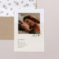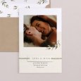Evenwichtige speling met wit, pastel en contour. Deze trouwuitnodiging zet je mooiste verlovingsfoto in een modern zacht licht. Een takje groen trekt de aandacht naar de namen van het aanstaande bruidspaar om zo het liefdevolle jawoord aan te kondigen. Een trouwkaart die bij vele thema's aansluit: elegant, wit, natuur, casual...Uniek!
