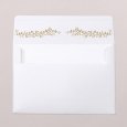 Olijftakken als symbool voor vrede, omringen triomfantelijk de namen van het bruidspaar, het geheel met goudfolie afgewerkt, en kondigen zo de aanstaande belofte van liefde en trouw aan. Deze elegante trouwkaart Fiorella staat in het teken van zuiver wit en een touch of gold voor een klassieke chique bruiloft. Te verkrijgen in meerdere kaartformaten.