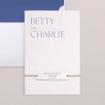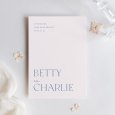 De inspiratie voor het maken van dit ontwerp werd gevonden in de uitspraak: Less is more. Een opvallend blauw retro lettertype siert een crème lichtroze achtergrond. Dit simpele design van een moderne trouwkaart werd aangeraakt door een vleugje vintage. De originele trouwuitnodiging Inspiration brengt de gasten in de sfeer van een minimalistische bruiloft met een verrassende persoonlijke stijl.