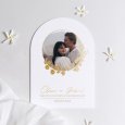Op de trouwkaart La Traviata komt een elegante plantaardige krans jullie favoriete koppel foto verfraaien. Veredeld met goud zal deze eigentijdse compositie op de meest mooie manier jullie aankomende bruiloft aankondigen.
