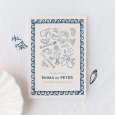 Het lijkt wel een modern, Mediterraanse schilderij, de illustratie op de Roca Marina trouwkaart. De schetsen van citrus- en zeevruchten, delicate takjes en bestek brengen de belofte van feestelijke eettafels in het warme zuiden.