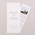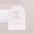Deze trouwkaart wordt gekenmerkt door zijn afgeronde bovenranden in de vorm van een boog en kan aan de voor- en achterkant worden gepersonaliseerd met de details van jullie trouwdag.