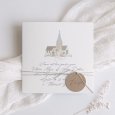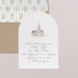 De plaats van jullie mooiste 'ja' wordt geïllustreerd in aquarel op de trouwkaart Faith. Een prachtig schilderij met een elegante, gekalligrafeerde aankondiging en een roze lint: perfect om het begin van dit nieuwe hoofdstuk samen te vertellen.