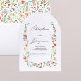 Deze trouwkaart wordt gekenmerkt door zijn afgeronde bovenranden in de vorm van een boog en kan aan de voor- en achterkant worden gepersonaliseerd met de details van jullie trouwdag.