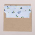 Het klassieke bloementhema krijgt een moderne twist op de trouwkaart Hortense. Een prachtige krans van blauwe bloemen siert dit ontwerp, dat perfect is om de toon te zetten voor een stijlvolle en kleurrijke landelijke bruiloft.