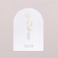 Met zijn elegante boogvormige uitsnijding zal deze huwelijksmenukaart, passend bij je uitnodigingen, prachtig passen bij je tafeldecoratie. Presenteer ze op elegante houten menuhouders (optioneel verkrijgbaar), leg er een op elk bord en maak ze extra speciaal met een mooie strik...