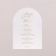 Met zijn elegante boogvormige uitsnijding zal deze huwelijksmenukaart, passend bij je uitnodigingen, prachtig passen bij je tafeldecoratie. Presenteer ze op elegante houten menuhouders (optioneel verkrijgbaar), leg er een op elk bord en maak ze extra speciaal met een mooie strik...