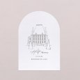 Met zijn elegante boogvormige uitsnijding zal deze huwelijksmenukaart, passend bij je uitnodigingen, prachtig passen bij je tafeldecoratie. Presenteer ze op elegante houten menuhouders (optioneel verkrijgbaar), leg er een op elk bord en maak ze extra speciaal met een mooie strik...