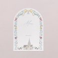 Met zijn elegante boogvormige uitsnijding zal deze huwelijksmenukaart, passend bij je uitnodigingen, prachtig passen bij je tafeldecoratie. Presenteer ze op elegante houten menuhouders (optioneel verkrijgbaar), leg er een op elk bord en maak ze extra speciaal met een mooie strik...