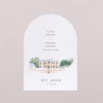 Met zijn elegante boogvormige uitsnijding zal deze huwelijksmenukaart, passend bij je uitnodigingen, prachtig passen bij je tafeldecoratie. Presenteer ze op elegante houten menuhouders (optioneel verkrijgbaar), leg er een op elk bord en maak ze extra speciaal met een mooie strik...