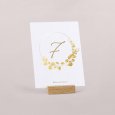 Plaats het tafelnummerkaartje in het midden van de tafel zodat het goed zichtbaar is voor jullie gasten. Zo vinden ze snel hun plek na het aflezen van hun tafelnummer op het tafelplan.