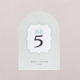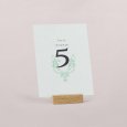 Plaats het tafelnummerkaartje in het midden van de tafel zodat het goed zichtbaar is voor jullie gasten. Zo vinden ze snel hun plek na het aflezen van hun tafelnummer op het tafelplan.