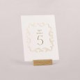 Plaats het tafelnummerkaartje in het midden van de tafel zodat het goed zichtbaar is voor jullie gasten. Zo vinden ze snel hun plek na het aflezen van hun tafelnummer op het tafelplan.