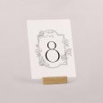 Plaats het tafelnummerkaartje in het midden van de tafel zodat het goed zichtbaar is voor jullie gasten. Zo vinden ze snel hun plek na het aflezen van hun tafelnummer op het tafelplan.