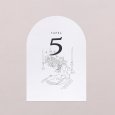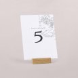 Plaats het tafelnummerkaartje in het midden van de tafel zodat het goed zichtbaar is voor jullie gasten. Zo vinden ze snel hun plek na het aflezen van hun tafelnummer op het tafelplan.