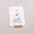 Plaats het tafelnummerkaartje in het midden van de tafel zodat het goed zichtbaar is voor jullie gasten. Zo vinden ze snel hun plek na het aflezen van hun tafelnummer op het tafelplan.