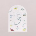 Plaats het tafelnummerkaartje in het midden van de tafel zodat het goed zichtbaar is voor jullie gasten. Zo vinden ze snel hun plek na het aflezen van hun tafelnummer op het tafelplan.